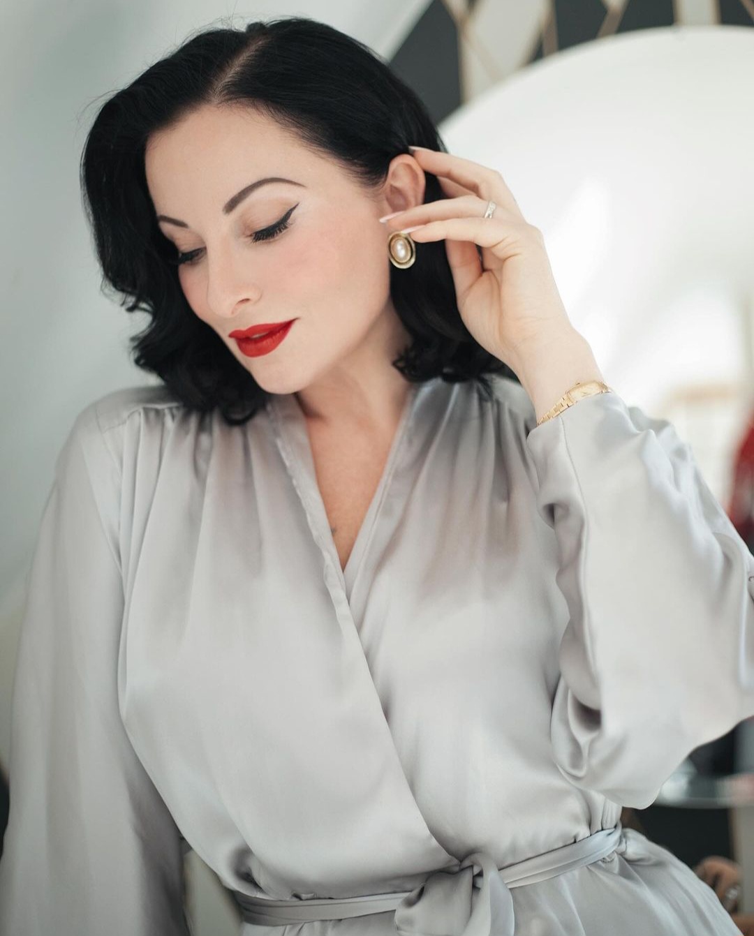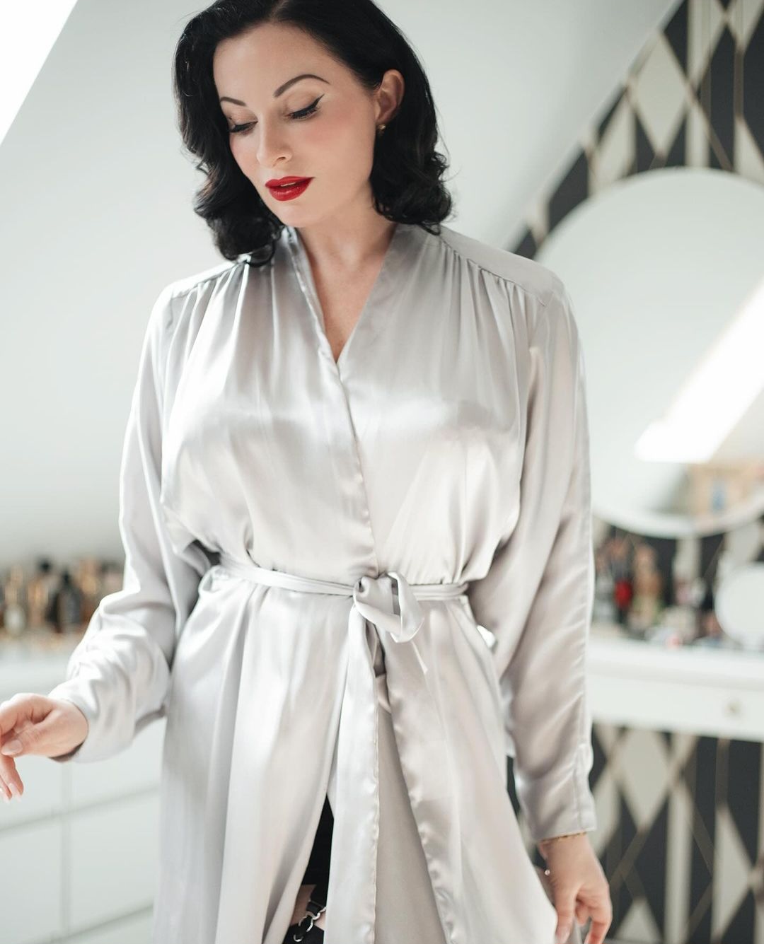 Der Morgenmantel ist zum Binden.