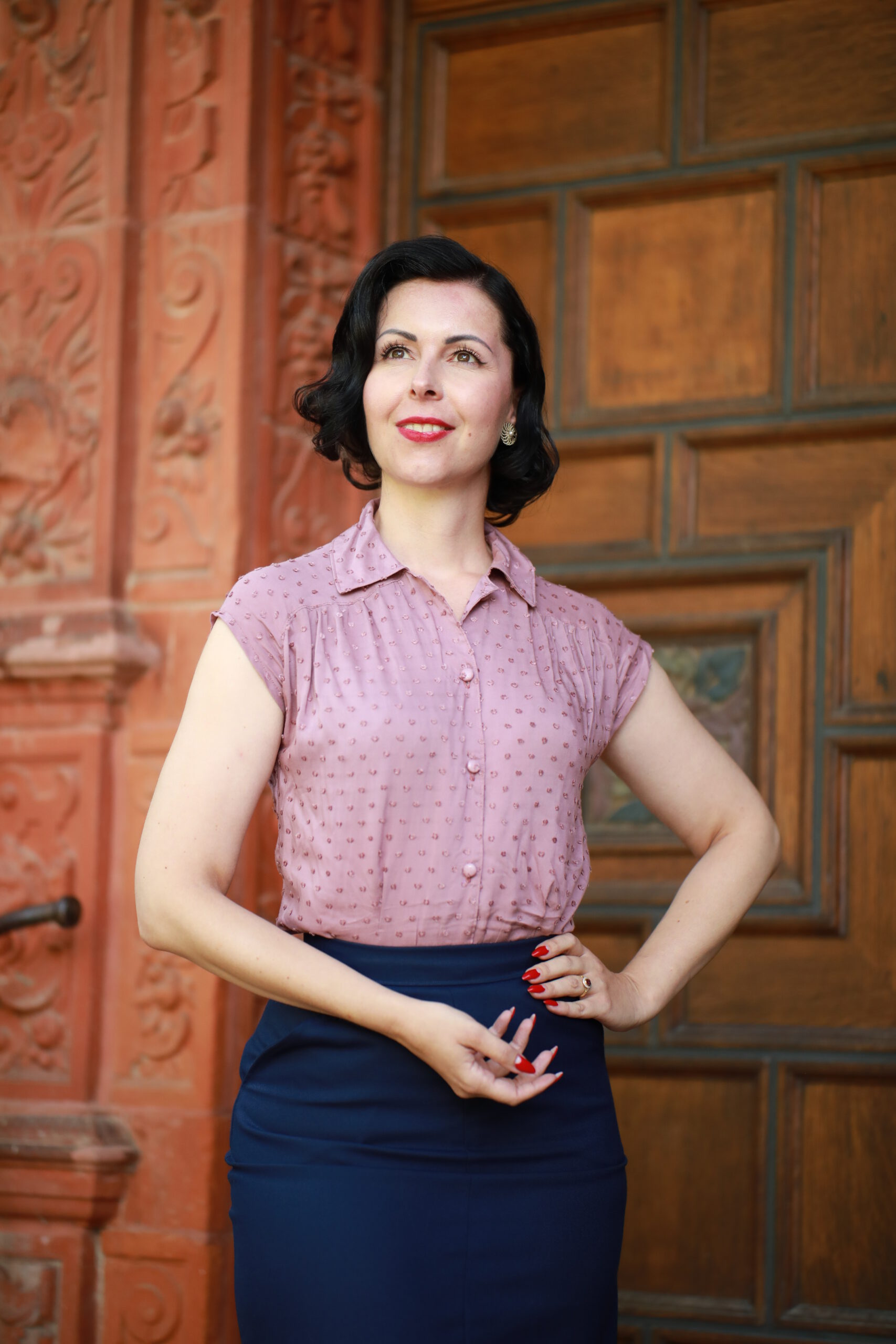 Wunderschöne 50er-Jahre Bluse aus Viskose in rosenholz.