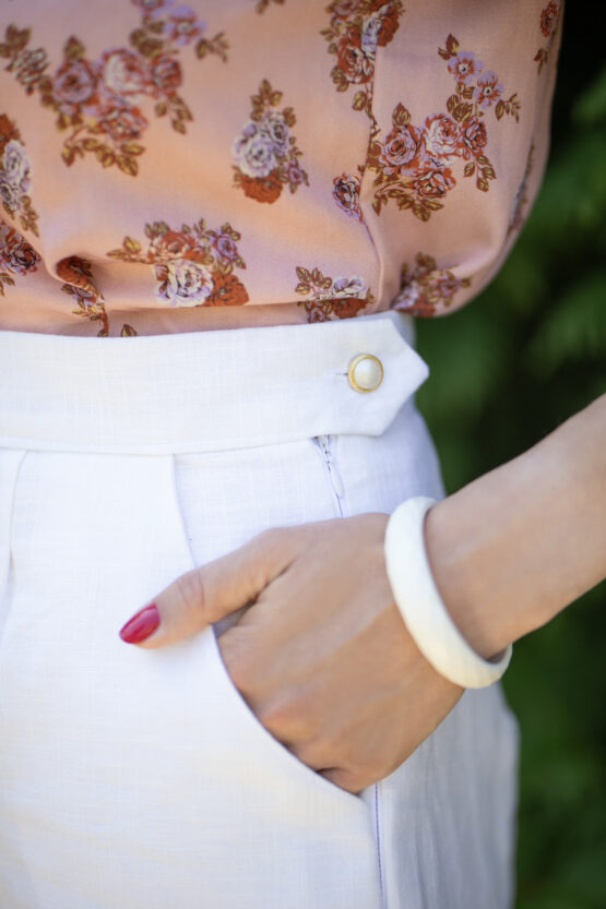 High Waist Shorts im 50er-Jahre Stil aus weißem hochwertigen Leinen.