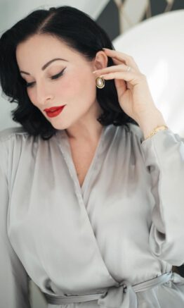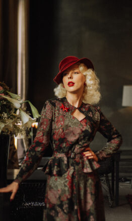 50er-Jahre Bluse Audrey Kleeblätter rot